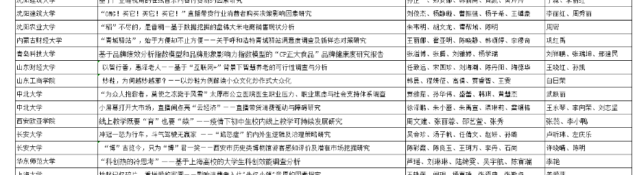 大赛201911月启动到20208月结束,历经层层选拔。国赛一等奖两项作品取题分别是“‘为众人抱薪者,莫使之冻毙于风雪’太原市公立医院职业压力、职业焦虑与社会支持体系调查”, 以及“小屏幕打开大市场,直播间点亮‘云经济’——直播带货消费驱动与障碍研究”。今年我校参加省赛的13项作品,有7项获省赛一等奖,4项获省赛二等奖,三等奖2项,推荐国家三等奖6项。