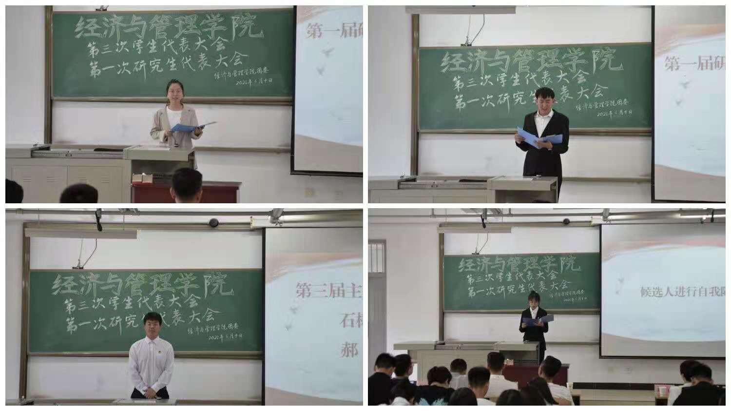 学生代表大会是代表学生的群众组织,是学院联系学生的桥梁和纽带,是学院民主管理和民主监督的重要形式。学生代表大会的隆重召开,是齐心协力开创我院学生工作新局面的一次动员会。也是学院团委、学生委员会面向新时代,谋求新发展的一次盛会。希望新一届学生会主席团成员可以切实发挥学生会桥梁纽带作用,促进、推动学院各项工作健康、有序地向前发展,竭诚服务广大学生,不负广大同学们的期待。
