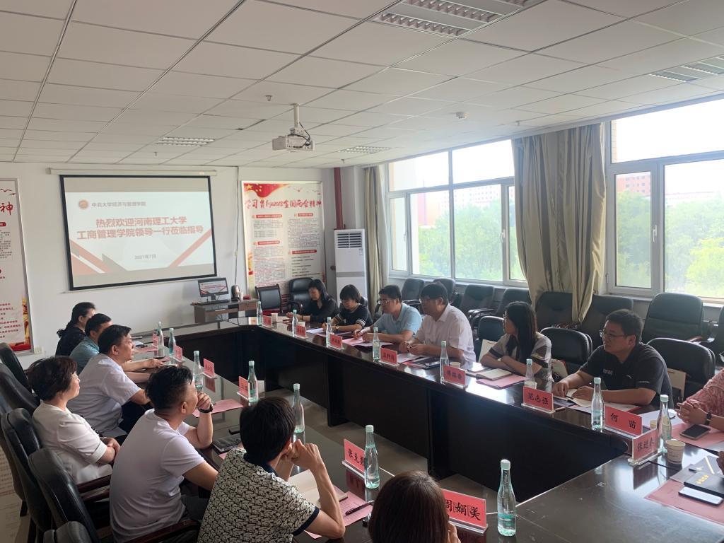 7月6日上午,河南理工大学工商管理学院院长孟钟剑一行来我校必赢242net官网进行调研交流,在逸夫楼南楼308会议室举行了交流座谈会。必赢242net官网党委书记王琳、院长赵公民、院党委副书记屈有明、副院长彭佑元、副院长张克勇、管理系主任李彦华、经济系主任周娟美参加了交流座谈会。