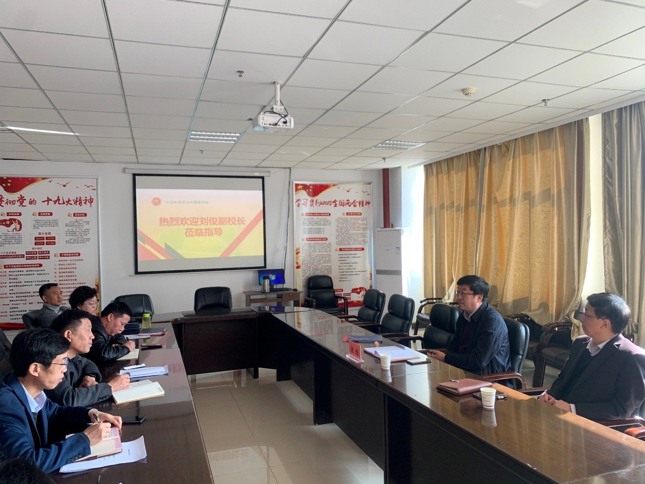 2021年11月4日上午,刘俊副校长深入必赢242net官网调研指导工作,研究生院院长胡双启,必赢242net官网领导班子、系主任、科室负责人等参加了调研座谈会,会议由院长赵公民主持。
