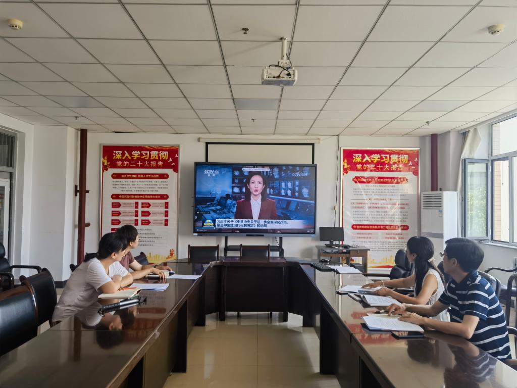 随后,与会人员集体观看了党的二十届三中全会相关视频,李爱霞同志领学了习近平《关于<中共中央关于进一步全面深化改革 推进中国式现代化的决定>的说明》并谈了自身的学习体会。她提到,作为高校教师,要深入贯彻落实会议精神,带头加强学习,主动思考,指导工作,充分发挥党员领导干部表率作用,切实把思想和行动统一到党的二十届三中全会精神上来。