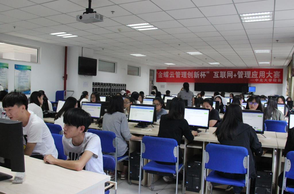 “金蝶云管理创新杯”互联网+管理应用大赛是教育部学校规划建设发展中心启动的全国高校校企合作“双创”实战演练平台主题竞赛,赛制分为校赛、省市赛、全国总决赛,其中,校赛选拔以机考形式,考察参赛队员基础管理、财务会计、供应链管理、生产制造管理等方面的理论知识。