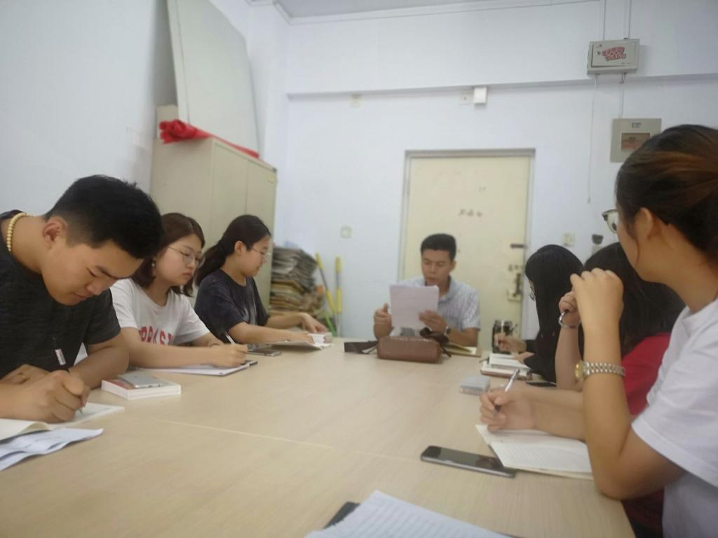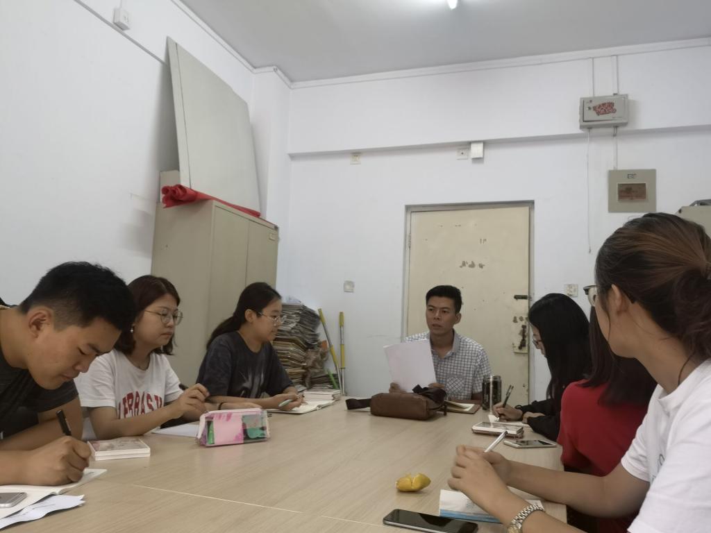 会议中那老师强调,作为学生干部要深入贯彻落实十九大精神及习近平新时代中国特色社会主义思想,在团学工作中向新思想靠近:其次提到了18级新生的思想建设以及团关系转接,迎新以后要落实此项工作;另外对六个团委部门九月份的工作进行了部署,最后特别强调了教育部下发文件将取消清考制度,要注意学风氛围的搭建。对于工作中各种文件的保存也做了要求,要求所有文件都必须存档。