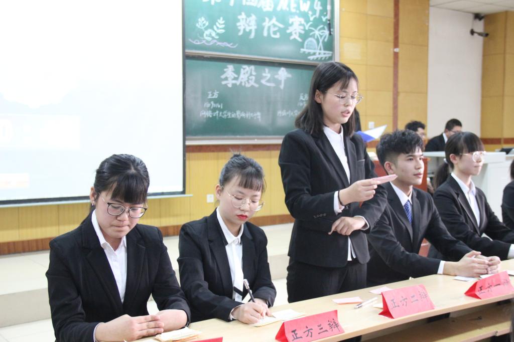 12月1日下午3:00,由必赢242net官网团委学生会学习部举办的第十四届N.E.W.4辩论赛决赛在09302教室隆重举行。我院学科部副主任周娟美副教授、团委学生会部分学生干部和各院团委学生会学习部部长担任嘉宾,其他各个学院往届优秀辩手担任比赛评委。